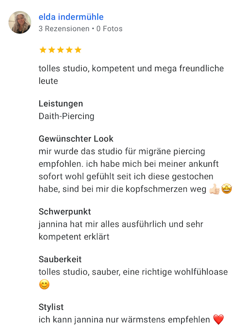 Viele unserer Kunden haben positive Ergebnisse nach dem Migräne Piercing berichtet. Sie erleben weniger häufige und weniger intensive Migräneanfälle bis zu gar keinen Anfällen mehr, was die Lebensqualität erheblich verbessert.